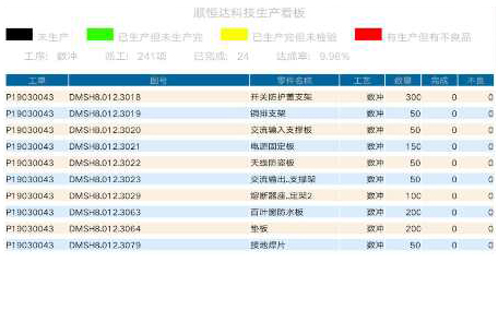 生產(chǎn)完成率及品質(zhì)檢驗(yàn)狀態(tài)看板